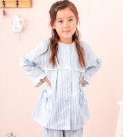 トップ > キッズパジャマ > 長袖 > パジャマ キッズ 女児 長袖 綿100%肌に優しいさらっとした柔らかいガーゼ楊柳ストライプ 春夏 130cm/140cm/150cm/160cm 前開き お泊り学習 林間学校 修学旅行 ナイトウェア ルームウェア