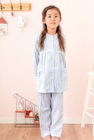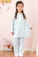 子供パジャマ130〜150cmキッズ女児用綿100%さらっとし柔らかい肌触りガーゼ楊柳前開きパジャマ【長袖・長パンツ】【女児用・子供用】