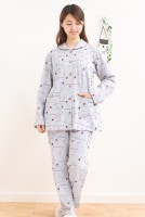 トップ > パジャマ > 肌にやさしい綿100%なめらかな肌触りのスムースニット地 眠りねこ 前開きパジャマ レディース 長袖 秋・早春向き ナイトウェア 入院準備 S/M/L/LL/3L