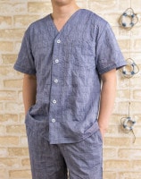 メンズパジャマ夏用先染めシャンブレー半袖ハーフパンツ前開きシャツタイプ【盛夏向き商品】【半袖・長ズボン】【父の日ギフト】【男性用ナイトウェア】【ルームウェア】【Sサイズ】【LLサイズ】【3Lサイズ】【4Lサイズ】あり
