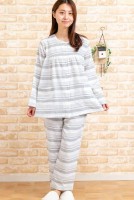 ガーゼパジャマレディース春秋肌に優しい綿100%ランダムボーダー入院準備母の日SサイズLLサイズ