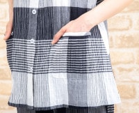 肌にやさやさしい綿100%楊柳チェックレディースパジャマ夏前開き【半袖・8分パンツ】【盛夏向き商品】【女性用ナイトウェア】【ルームウェア】