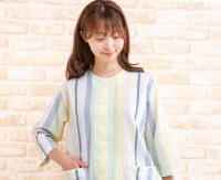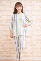 トップ > すべての商品 > パジャマ レディース 夏 綿100% 軽くて涼しいソフトコットン ストライプ 7分袖9分パンツ 前開き S/M/L/LL/3L 入院準備