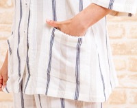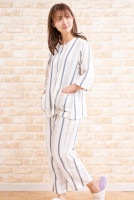トップ > すべての商品 > パジャマ レディース 春夏 綿100% 柔らかい肌触りのダブルガーゼストライプ 7分袖9分パンツ 前開き S/M/L/LL/3L 入院準備