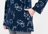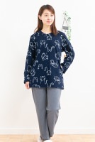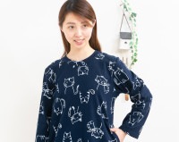 肌にやさしい綿100%滑らかな肌触りのスムースニット地 ねこ柄 かぶり長袖パジャマ レディース 春秋向き ナイトウェア ルームウェア S/M/L/LL/3L/4L