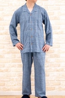 トップ > すべての商品 > パジャマ メンズ 軽くて涼しいサラサラした肌触りのソフトコットン地チェック 前開き長袖長パンツ 【Sサイズ】【LLサイズ】【3Lサイズ】ナイトウェア ルームウェア 父の日 入院準備
