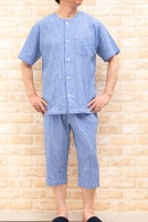 トップ > すべての商品 > パジャマ メンズ 夏 前開き半袖 7分パンツ(パンツ前開き) 肌に優しい綿100% 軽くて涼しいソフトコットン素材ストライプ 紳士ナイトウェア 父の日M/L/LL/3L/4L
